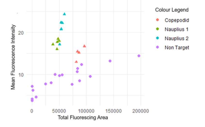 Refining methods for identifying sea lice larvae using fluorescence to examine how salinity and hydrodynamics affect sea lice abundance